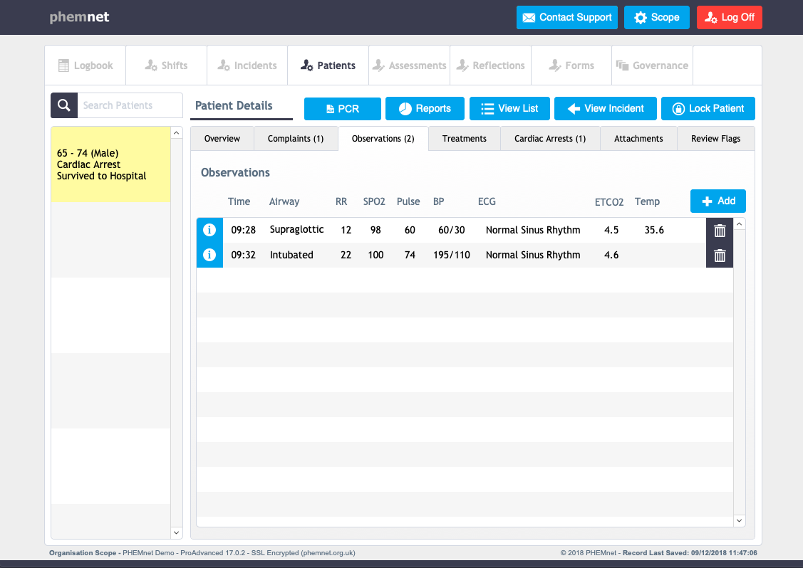 5. A list of all the patients observations will now be displayed under the Observations Tab